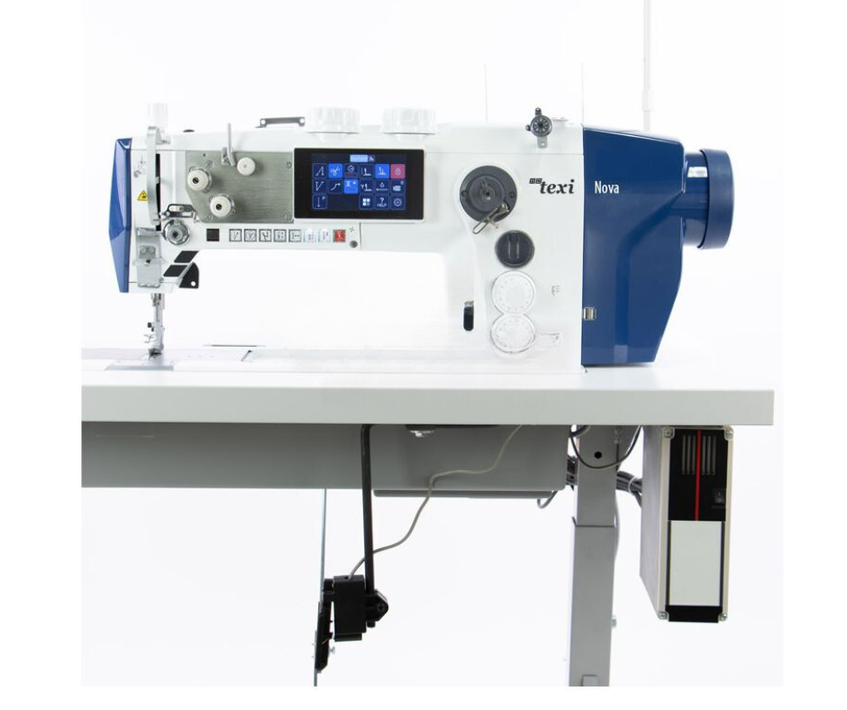 TEXI NOVA 2609 PREMIUM este o mașină de cusut cu un singur ac pentru coaserea materialelor grele, cu funcții automate, triplu transport și graifer orizontal XXL foarte mare (bobină de 26 mm).